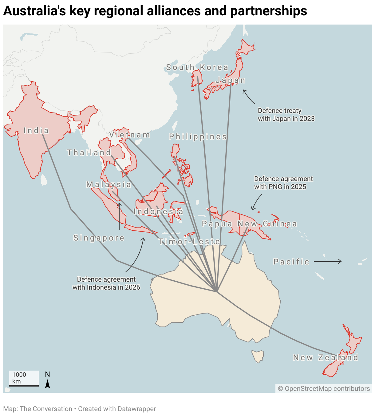 Beyond this, Canberra has signed a number of "comprehensive strategic partnerships" in recent years with countries in the region, including the ASEAN bloc of Southeast Asian countries, India, Indonesia, Singapore, Papua New Guinea, Malaysia, South Korea, and most recently, Vietnam.