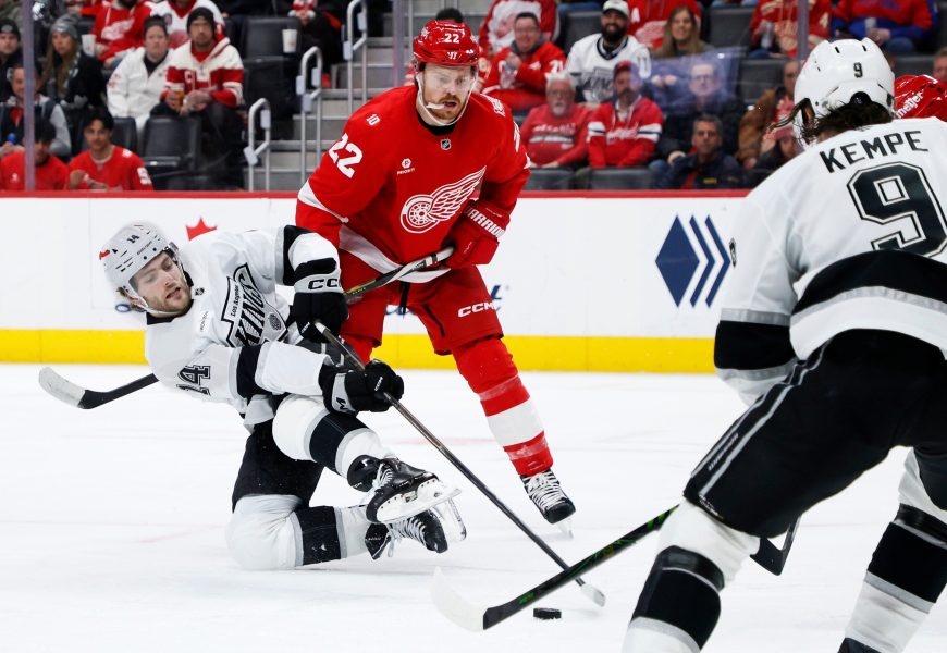 DETROIT (AP) – Anton Forsberg made 26 saves and the Los Angeles Kings beat the Red Wings 3-1 on Tuesday night as Detroit winger Patrick Kane moved into a tie with Dallas’ Mike Modano as the highest-scoring American-born players in NHL history.