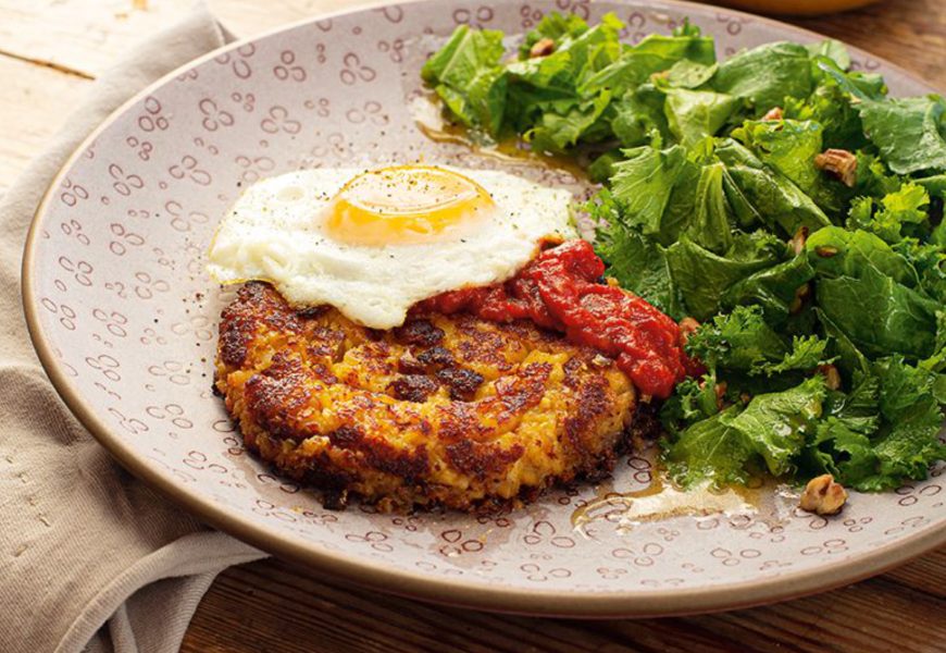 To serve: Spoon the tomato sauce over the fish cakes and serve with a side of the greens salad.