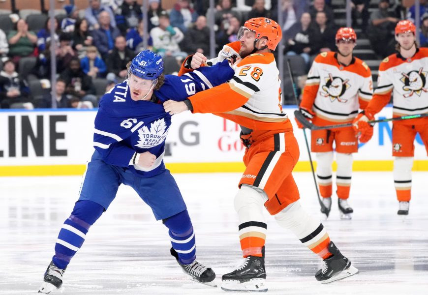 ANAHEIM, Calif. (AP) – John Tavares redirected a shot from Morgan Rielly into the net with five seconds left in overtime to lift the Toronto Maple Leafs to a 5-4 come-from-behind victory over the Anaheim Ducks in a fight-marred game Monday night.
