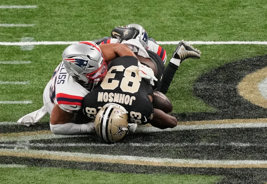 The Patriots were able to run out the clock after that, thanks to receiver Kayshon Boutte holding on to a contested third-down catch near the sideline with cornerback Kool-Aid McKinstry right on him.