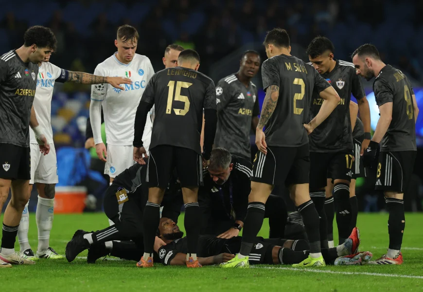 NAPLES, Italy (AP) – Qarabağ defender Kevin Medina was knocked out by a powerful shot from Napoli’s Scott McTominay during their Champions League match Tuesday.