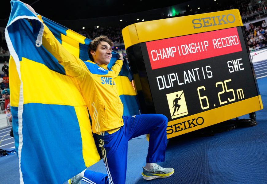 Duplantis won his fourth consecutive world indoor championships with a tournament record vault of 6.25 meters, a 10 centimeter improvement on his winning height a year ago in Nanjing.