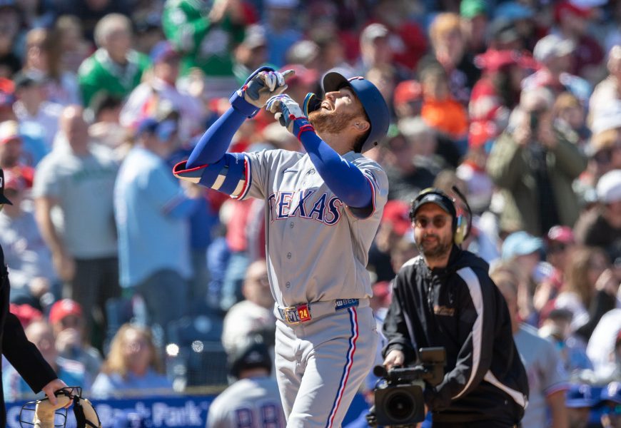 First homers and a fantastic first start from Gore helped the Rangers take two of three from the NL East champion Phillies.
