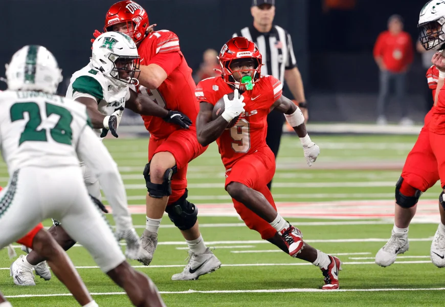 UNLV (9-2, 5-2 Mountain West Conference) turned the game-opening drive into a 44-yard field goal by Ramon Villela, but Hawaii (7-4, 4-3) answered with Micah Alejado’s 70-yard scoring strike to Jackson Harris on the Rainbow Warriors’ third play from scrimmage.