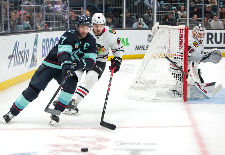 SEATTLE (AP) – Sacha Boisvert scored his first NHL goal with 5:42 to play to give Chicago a two-goal lead and Tyler Bertuzzi scored his team-leading 32nd goal as the Blackhawks beat the Seattle Kraken 4-2 on Saturday night.