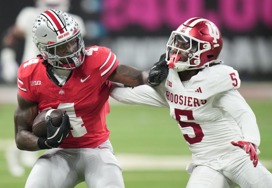 Ohio State got a first-round playoff bye when the final CFP rankings that came out Sunday, a day after its 13-10 loss to undefeated Indiana in the Big Ten championship game Saturday night. The Hoosiers had been No. 2 in the penultimate CFP rankings, but flipped spots with the previously top-ranked Buckeyes in both those and the new AP poll.