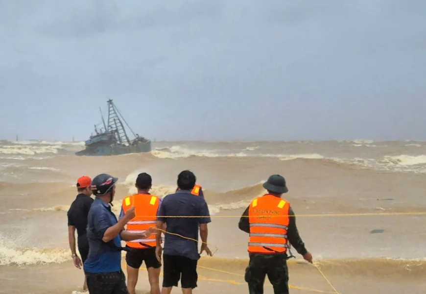 In Quang Tri province, strong winds broke the ropes anchoring a fishing boat taking shelter, sending nine crew members and the vessel adrift. Four managed to swim ashore. In Gia Lai province, families reported losing contact with eight fishermen on a fishing trip.