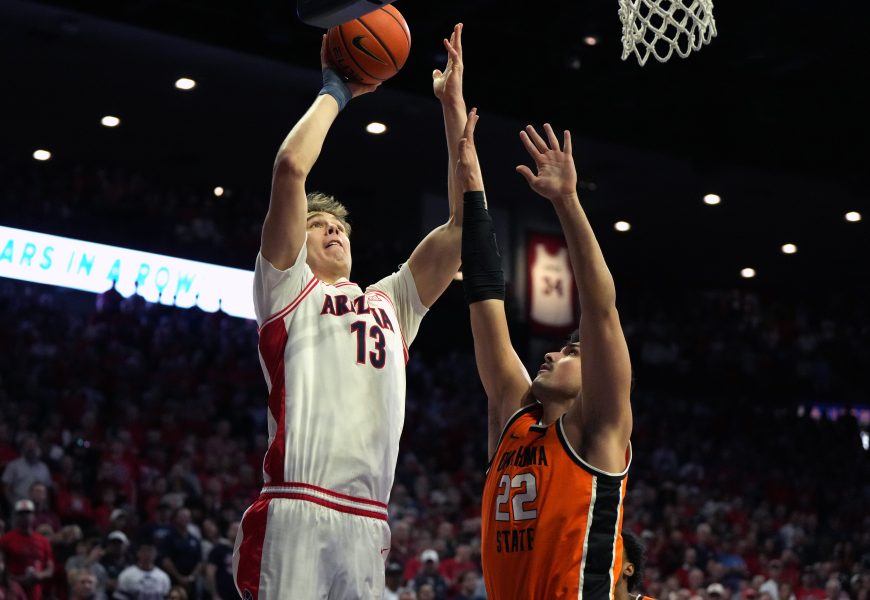 Tommy Lloyd's Wildcats (23-0) claimed all 59 first-place votes in the latest poll, making them the unanimous choice for a fourth consecutive week. That comes after Arizona - one of two unbeaten teams left in Division I - won at rival Arizona State, then returned home to beat Oklahoma State by 37 points.