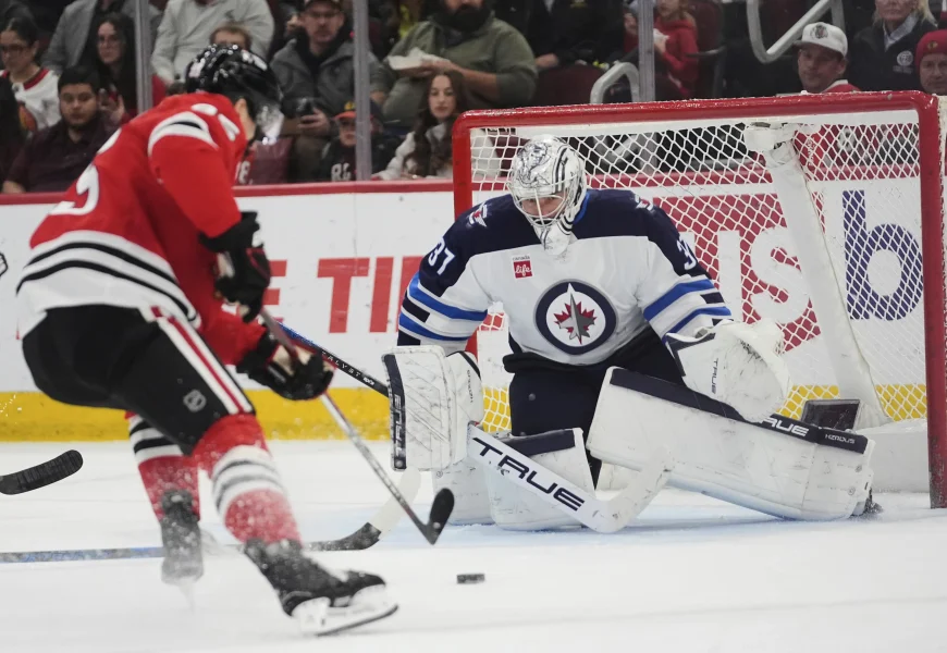 Connor Hellebuyck made 18 saves in the win for the Jets. Spencer Knight made 20 saves for the Blackhawks.