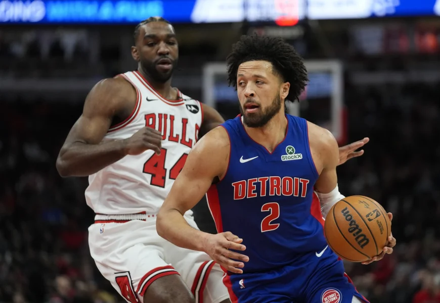 Cade Cunningham added 18 points, 13 assists and nine rebounds to narrowly miss his 15th career triple-double as the Pistons won their fifth straight game. Tobias Harris also had 18 points and Duncan Robinson added 17 for league-leading Detroit (42-13), which dealt Chicago its season-high eighth straight loss.