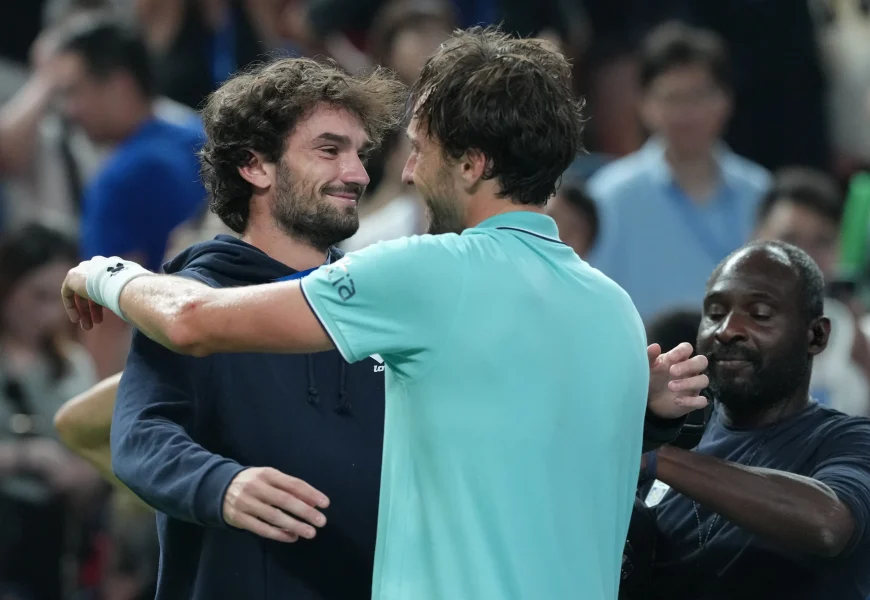 SHANGHAI (AP) – Two cousins will meet in the final of the Shanghai Masters after qualifier Valentin Vacherot stunned a hobbled Novak Djokovic and relative Arthur Rinderknech fought back to beat Daniil Medvedev on Saturday.