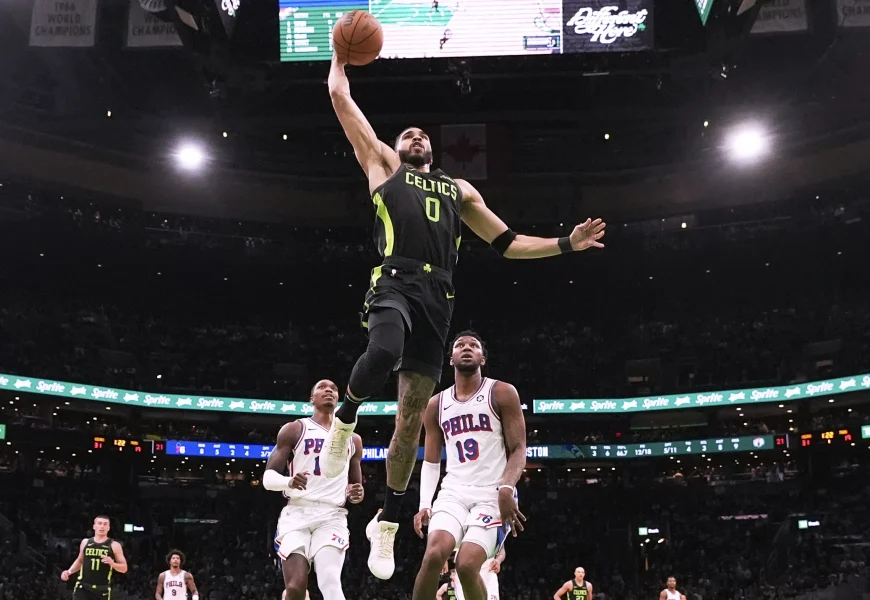 BOSTON (AP) – Jayson Tatum had 25 points, 11 rebounds and seven assists in his first playoff game since rupturing his right Achilles tendon last season, and the Boston Celtics rolled past the Philadelphia 76ers 123-91 in Game 1 of their Eastern Conference first-round series on Sunday.