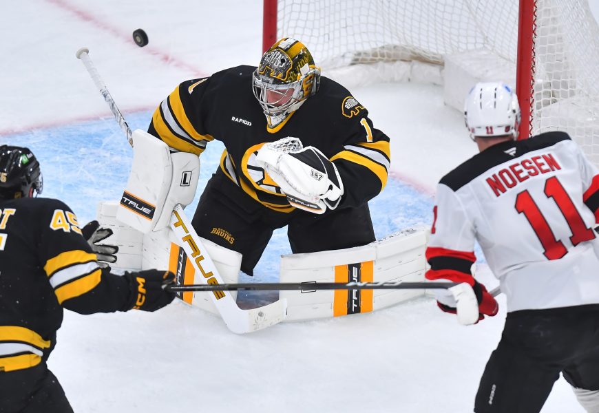 New Jersey goalie Nico Daws allowed four goals on 12 shots in the opening period before getting some stronger defensive support the rest of the way. Daws finished with 23 saves.