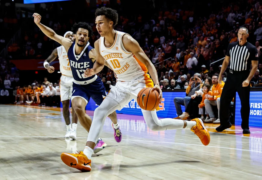 KNOXVILLE, Tenn. (AP) – Felix Okpara had 20 points and eight rebounds, Nate Ament added 19 points and 10 boards, and No. 20 Tennessee cruised to a 91-66 victory over Rice on Monday night despite an injury to forward J.P. Estrella.