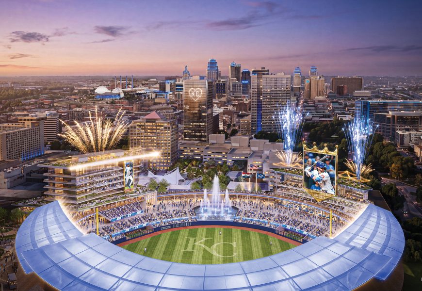 Hallmark intends to build a new headquarters in the area, which is connected by a streetcar to the Power & Light District, where the T-Mobile Center serves as its anchor. That part of downtown Kansas City will provide the backdrop beyond the outfield fence.