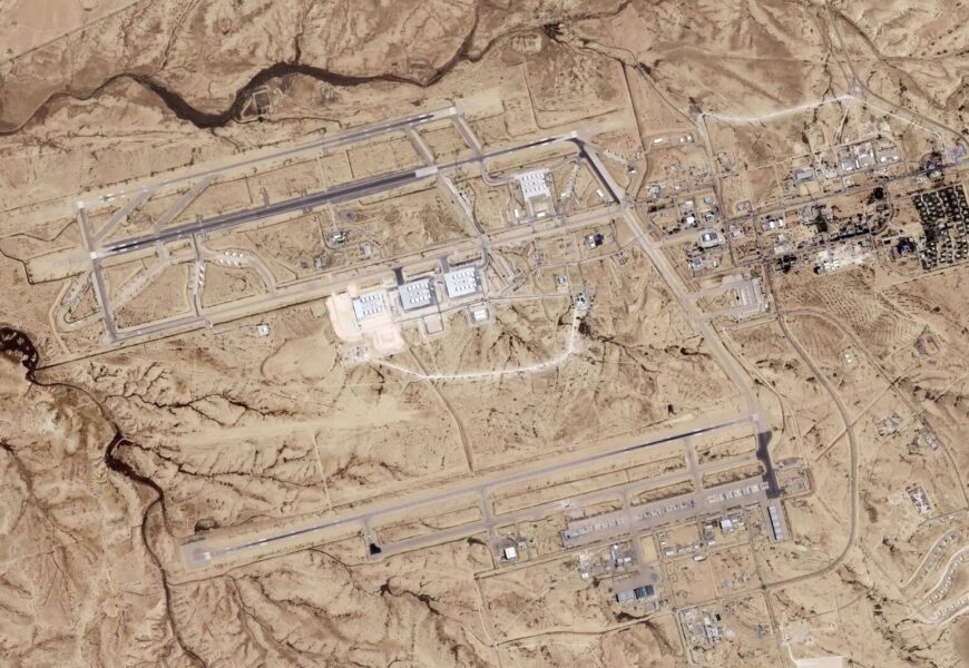 The satellite image corresponds to footage earlier released by the Israeli military, which showed construction equipment working on the damaged taxiway. A hangar in the background of the video mirrors those seen nearby.