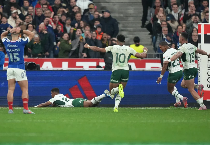 The Springboks took an attacking lineout and, following a rolling maul, André Esterhuizen bundled over for a try. Flyhalf Sacha Feinberg-Mngomezulu missed the extras but replacement scrumhalf Grant Williams blindsided the defense and looped around the right for a converted score to crush Fabien Galthié’s side.