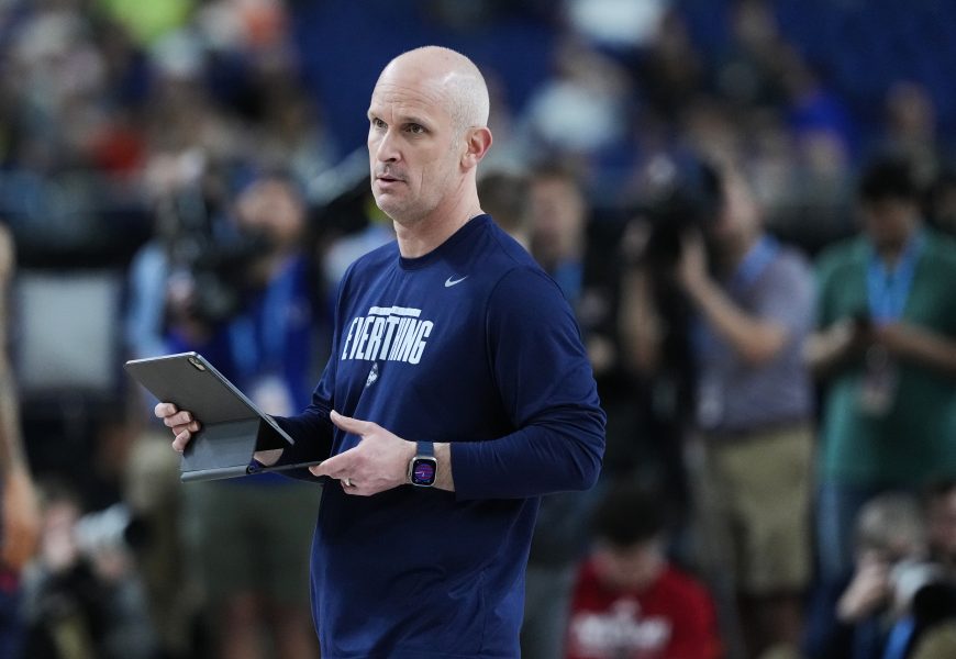 INDIANAPOLIS (AP) – UConn had just finished Friday’s public practice at the Final Four. Coach Dan Hurley had paced around the court for the better part of an hour clutching a tablet, staring and poking at the screen seemingly as much as he watched his players get up shots in massive Lucas Oil Stadium.