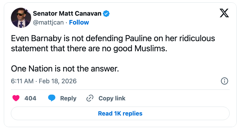 Her extreme comments left Barnaby Joyce, her new recruit, uncomfortable. They also brought notable pushback from prominent Nationals senator Matt Canavan. The Liberals and Nationals will be going head-to-head against One Nation in Farrer. They will need to take it on robustly.