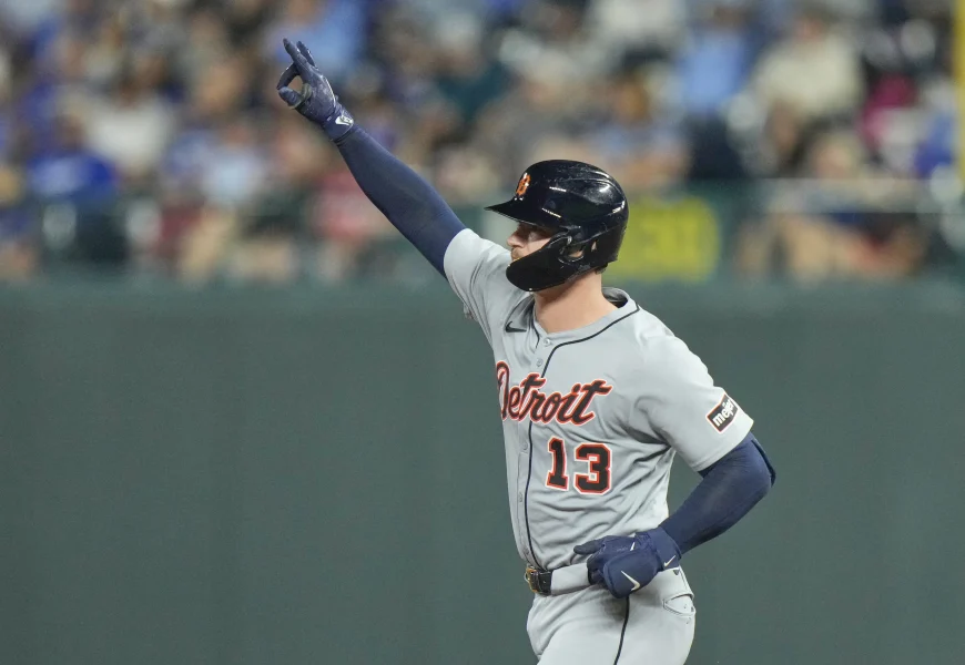Mears bounced a changeup past Perez, allowing McKinstry to score, rookie Kevin McGonigle walked and Dillon Dingler hit a 106.7 mph grounder past third baseman Maikel Garcia. The ball bounced to the left-field wall for an RBI double