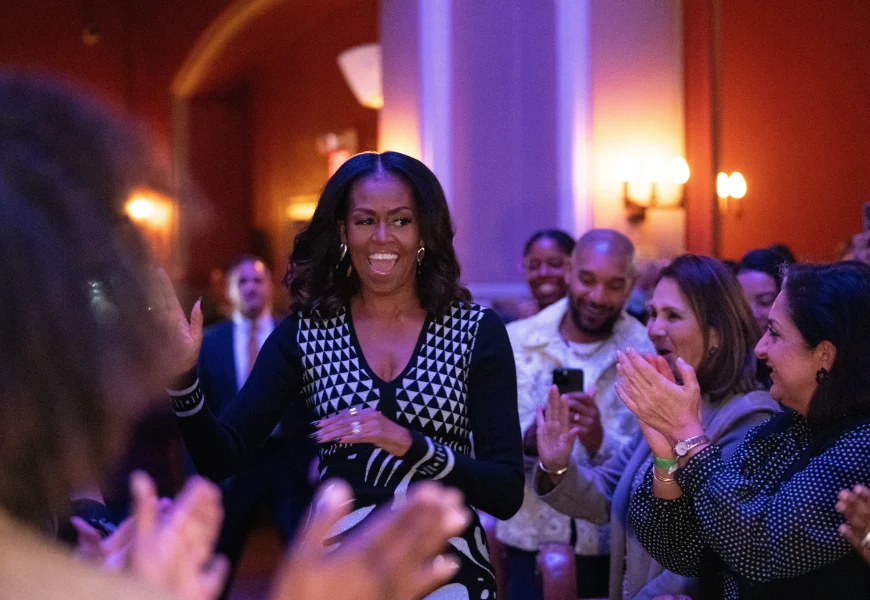 “I was concerned about, ‘Can I hug somebody in it? Will it get dirty?'” she said Wednesday night during a moderated conversation about her style choices dating to growing up on the South Side of Chicago to when she found herself in the national spotlight as the first Black woman to be first lady. “I was the kind of first lady that there was no telling what I would do.”