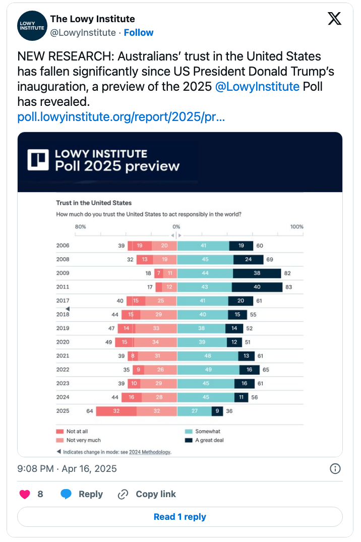 Carney's point - that American leadership is no longer a reliable anchor for the international system - had strong appeal in Europe and Canada. But it also highlights what is now clearly the weakest link in the US-Australia alliance - not American capability, but American reliability.