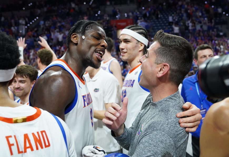 Both lopsided wins came with home-court celebrations. Florida handed out hats and T-shirts and cut down nets after securing at least a share of the SEC title against the Razorbacks. SEC Commissioner Greg Sankey presented the team the trophy before facing the Bulldogs. The two hours that followed essentially served as a victory parade and ended with players lifting Golden into the air after No. 100.