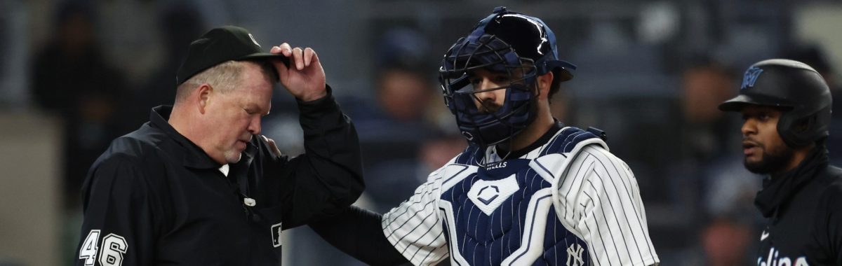 NEW YORK (AP) – Plate umpire Ron Kulpa left Saturday’s game between the Miami Marlins and New York Yankees with two outs in the fourth inning after taking a foul ball off his mask.