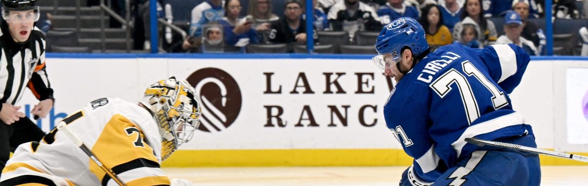 TAMPA, Fla. (AP) – Anthony Cirelli registered his second career hat trick, Nikita Kucherov had a goal and three points, and the Tampa Bay Lightning moved into first place in the Atlantic Division after a 6-3 victory against the Pittsburgh Penguins on Thursday night.