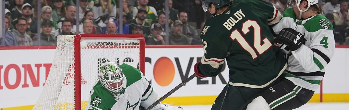 Wild's Boldy misses time in 1st period after face-planting