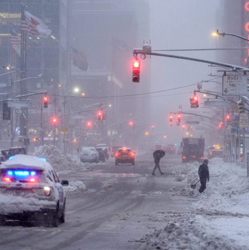 Millions of people in New York City and a large swath of the northeastern U.S. are stuck at home under road travel bans and blizzard warnings Monday as heavy snow and strong winds intensified, creating whiteout conditions in the densely populated region.
