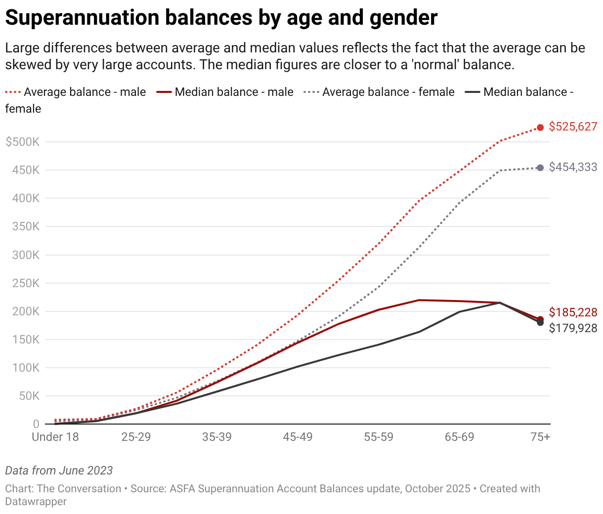 To see where you truly sit, you should ignore "averages", which can be skewed by a small number of very large balances. Instead, we look at the median, which is the middle value. Half of people have more than this amount, and half have less.