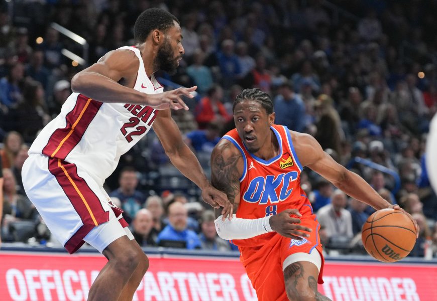 OKC’s Jalen Williams leaves game in Miami, grabbing at right hamstring. Team says it’s a thigh issue